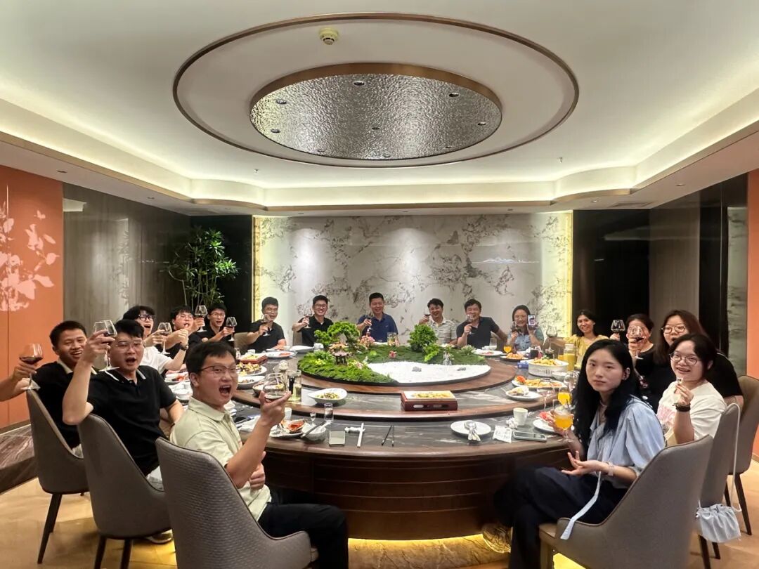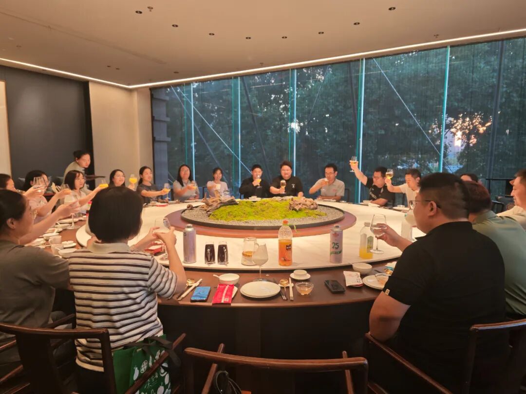 晚餐时间,大家欢聚围坐,举杯相碰,满是真挚情谊,也饱含着对公司前路的美好祝愿。
